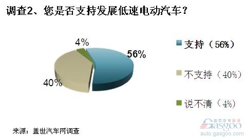 同時,也有四成的參與者持反對意見,他們認為對傳統技術的脫離和管理難題決定了低速電動車很難也不應該大面積推廣。知名汽車評論員賈新光曾表示,從目前情況看,要求低速電動汽車在動力性能方面達到傳統燃油汽車的水平的確很難。低速電動汽車架構簡單、生產也不復雜,有摩托車的制造水平就可以生產。他認為,從國內現有產品來看,低速電動汽車做工一般都比較粗糙,有的還用鉛酸電池,這并不值得提倡。而剩余4%的參與者則選擇了"說不清"。