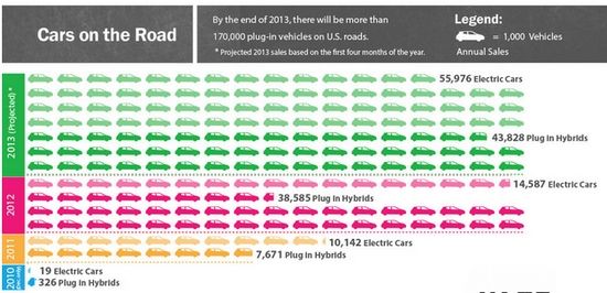 另外,Recargo根據今年前四個月全美電動汽車銷量預測,到2013年底,美國將有17萬輛電動汽車上路。盡管與傳統燃油汽車的數量相比不值一提,但相比2011年和2012年的電動汽車數量,這樣的增長速度非常迅猛,其中又以純電動汽車的增長最為顯著。