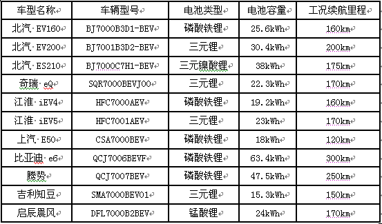 新能源汽車電池分類表