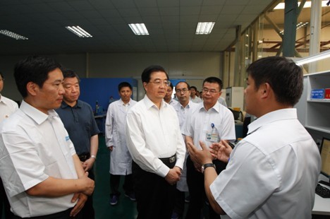 原國(guó)家主席胡錦濤與中航鋰電員工在交流