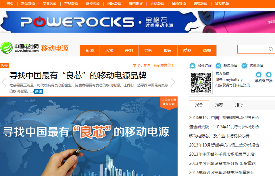 據悉,中國電池網移動電源頻道采用瀑布流的版式,加強了產品導購、測評、深度報道、專題策劃、原創策劃,與微博(http://weibo.com/chinaitdcw)、微信(微號:mybattery)、手機客戶端密切配合、互動,實現了價值信息的行業無縫隙覆蓋,百度、360、搜狗、google等搜索引擎秒收的技術對接,使得精確目標到達率、覆蓋率提高50%以上。“2014年線下銷售和在線團購有望爆發,根本原因在于我們的專業性、權威性使得我們做移動電源的線上推廣和線下團購更加值得消費者信賴、放心。”中國電池網創始人/CEO于清教表示。