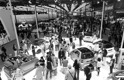 2014年北京車展共展出全球首發車118臺,其中新能源車高達79臺。從這些新車,可以看到未來汽車的流行趨勢。圖為奔馳展臺一角。本報記者 趙 晶攝