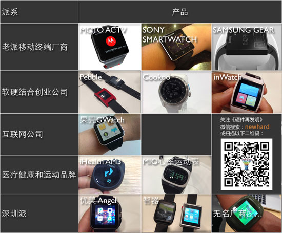 摩托羅拉、SONY、蘋果、三星、中興、酷派等等老牌移動終端廠商已經或正在加入到智能手表浪潮中。大致可以分為兩類:已經推出的和即將發布的。