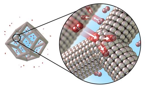 溶有氧氣的溶劑會引起多面體內(nèi)部的溶解效應,最終形成了中空十二面體的納米框架結構。通過升高反應溫度,反應時間從兩周縮短到12小時。