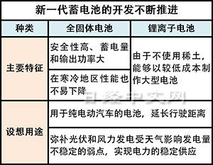 在日本,圍繞安全性優于目前主流鋰離子電池的新一代電池——“全固體電池”的研發正不斷涌現成果。日本東北大學與豐田汽車將全固體電池的充電時間縮短到了傳統電池的10分之1。東北大學的其他研發團隊則開發出輕量的全固體電池,并降低了工作溫度。另外,韓國三星電子也正在開發提高全固體電池使用壽命的技術。在日本國內外,面向實用化的開發競爭正日趨激烈。