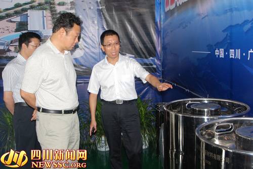 廣漢市委書記毛君甫向副省長曲木史哈等領(lǐng)導(dǎo)介紹項(xiàng)目情況