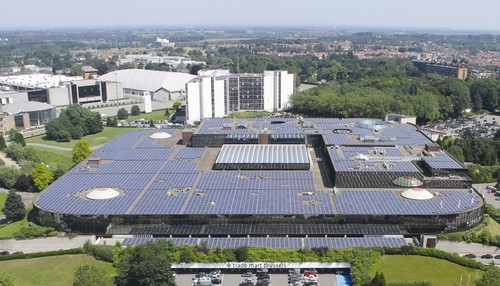 2.5MW光伏系統安裝在布魯塞爾商城的屋頂上,位于布魯塞爾地標原子塔附近。占用面積兩畝多(21,400平方米)——相當于四個足球場的大小,是布魯塞爾地區最大的光伏電站之一。該電站年發電量200萬千瓦時,相當于555個家庭每年平均能源消費量。