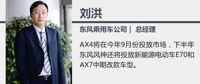東風(fēng)風(fēng)神全新小型SUV車型AX4已于7月3日在武漢正式下線,在下線儀式上,東風(fēng)乘用車公司總經(jīng)理劉洪表示:“AX4將在今年9月份投放市場,下半年東風(fēng)風(fēng)神還將投放新能源電動車E70和AX7中期改款車型。”可以看出,SUV車型和新能源汽車將成為東風(fēng)風(fēng)神在今年下半年的“主旋律”。