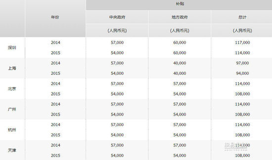 結合國家新能源補貼來看,騰勢的續航里程為300公里,所以它能夠享受5.7萬元/臺的補貼標準,同時北京市還能為其提供5.7萬的補貼,合起來看,在北京它將享受11.4萬元的補貼,也就是說兩款車型的價格分別為25.5-28.5萬元。而在上海和深圳地區,它將享受的補貼分別為9.7萬和11.7萬元。