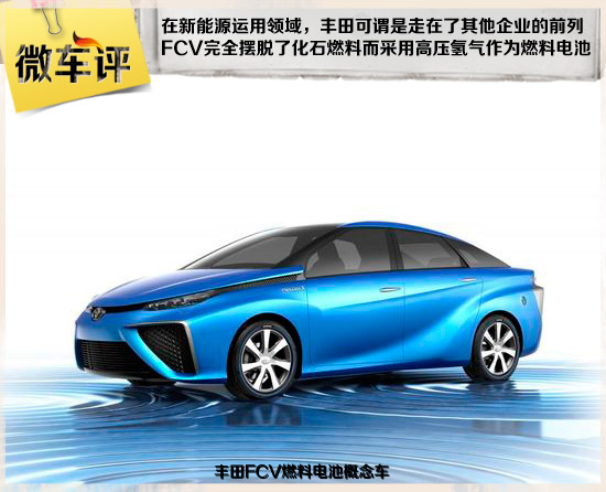此次豐田公布的FCV概念車擁有100千瓦的動力輸出,整車三圍尺寸4870×1810×1535mm,軸距2780mm,車內提供了四人足夠的乘坐空間。根據豐田的消息顯示,燃料電池的提供的動力足夠普通家庭日常使用七天。同時豐田還表示FCV概念車將在2015年正式實現量產。