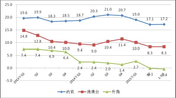 圖4  2013年至今各經(jīng)濟(jì)類型銷售產(chǎn)值增速