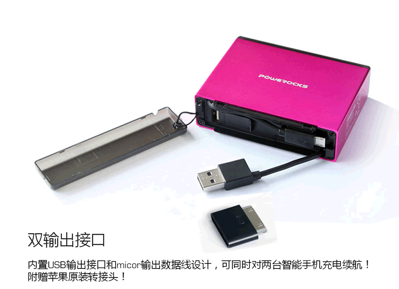 3.標配micor轉蘋果30pin轉接頭,可兼容所有蘋果產品包括ipad和絕大部分USB充電的手機和電子設備.                  ?????????????????????????????