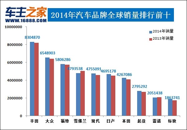 2014年汽車品牌全球銷量排行榜 北汽集團逆襲