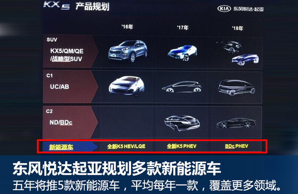 東風悅達起亞推5款新能源車 K5混動將上市