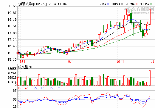 道明光學主營反光材料、反光服裝及反光制品等。根據公司此前預計,公司2014年度凈利潤為2205萬元至2756萬元,同比增長20%至50%。...