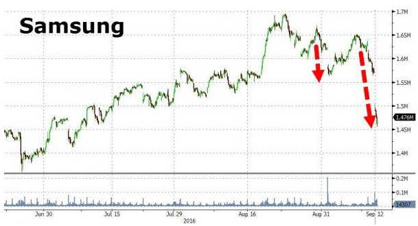 Note 7電池風波持續發酵 市值兩天蒸發掉200億美元