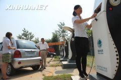 6月15日,山東濱州市市民靳倫杰在濱城區供電公司“加電站”,僅用了十幾分鐘的時間,就為自己的愛車加足了電。劉春迎 攝 新華網山東頻道6月17日電 為服務新能源電動汽車發展,促進清潔能源有效利用。國家電網山東濱州供電公司在城市交通主干道、大型商業區和居民區,安裝電動汽車充電機,讓電...