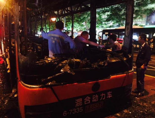 杭州鬧市區一輛混合動力公交車起火 致9人受傷