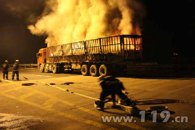 滿裝廢舊鋰電池半掛車起火 山東棗莊消防接警速處置