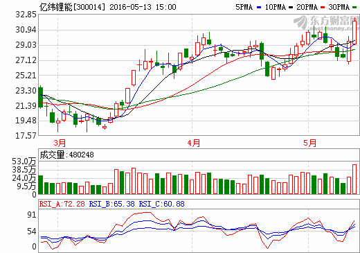 13日鋰電池概念股盤后統計 億緯鋰能漲幅8.75%