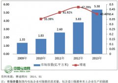 2013年,中國國內鋰電隔膜的市場容量為5.38億平方米,同比增長40.40%,市場規(guī)模達到50.32億元,同比增長20.52%;2013年全球隔膜產量達到8.37億平方米,較2012年增長27.98%。...