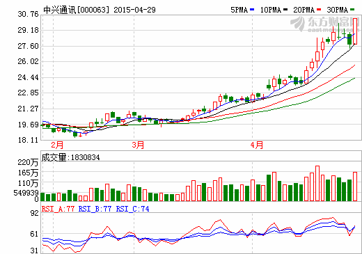29日智能穿戴概念股盤后統計 中興通訊漲停...