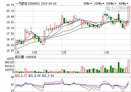 20日新能源汽車概念股盤后統計 一汽轎車漲停