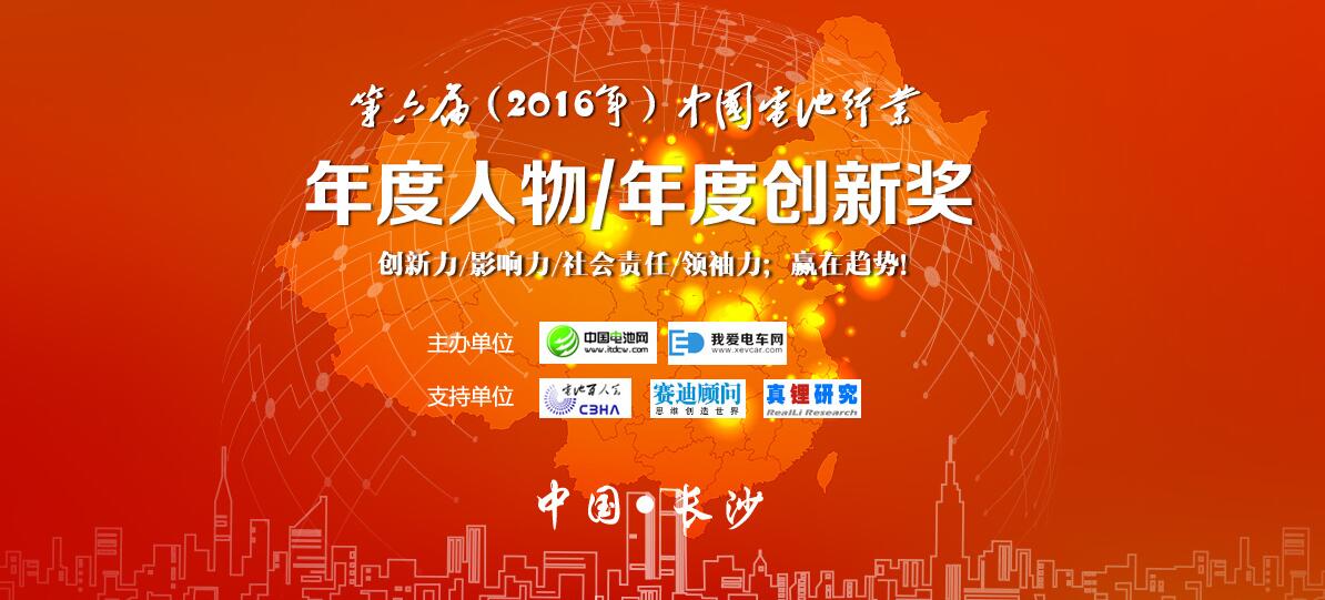 由中國電池網(m.chronotech.cn)、我愛電車網(www.xevcar.com)主辦,電池百人會(CBHA)、賽迪顧問(CCID)和真鋰研究(RealLi)協辦的第六屆(2016年)中國電池行業年度人物/年度創新獎評選活動即日起拉開帷幕。...