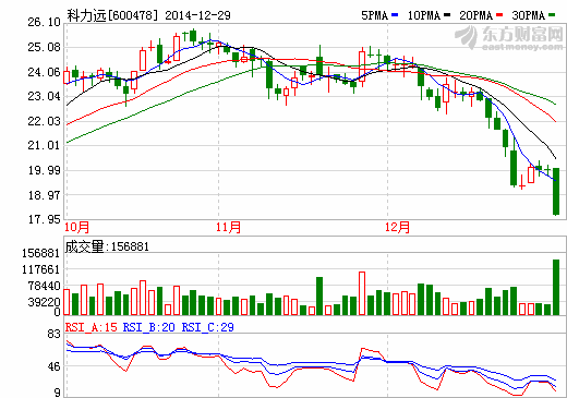 科力遠29日開盤震蕩下挫跌停 報于17.95元