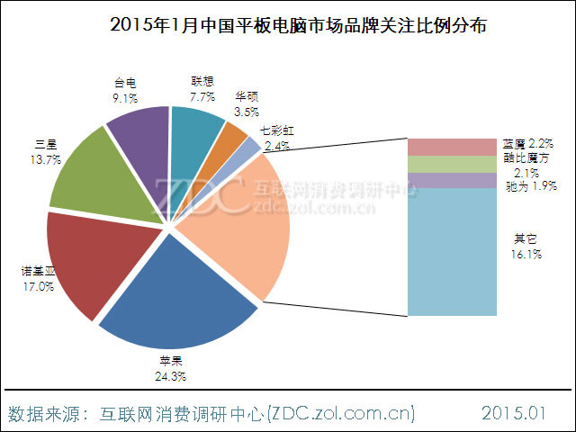 2015年1月中國平板電腦市場 蘋果諾基亞三星三足鼎立