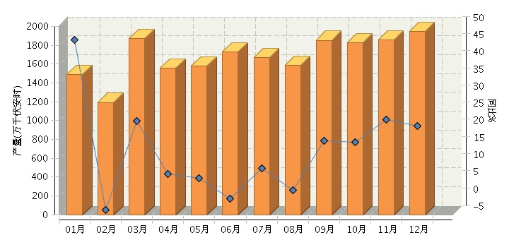 2013年全國(guó)鉛酸蓄電池行業(yè)累計(jì)完成產(chǎn)量20,502.74萬(wàn)千伏安時(shí),同比增長(zhǎng)15.36%。...