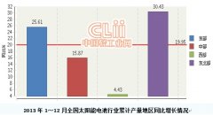 2013年全國太陽能電池行業完成產量同比增長19.95%