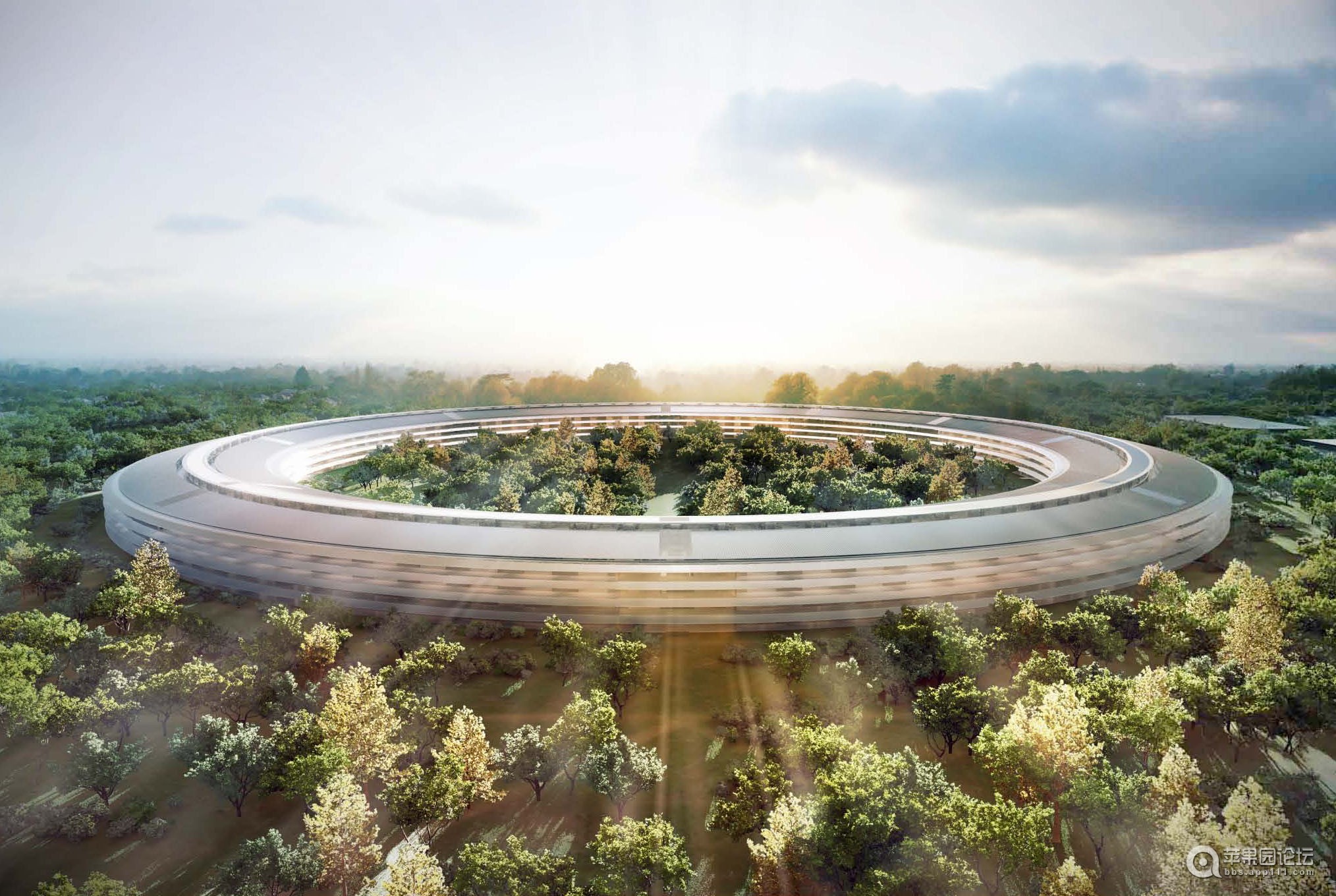 蘋果“太空船”園區屋頂安裝太陽能電池板 禮堂接近完工