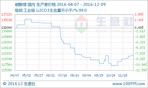 國內碳酸鋰市場平穩運行 維持12萬元/噸左右