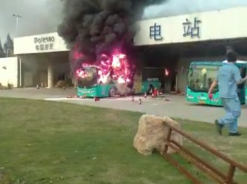 深圳中國普天力能加電站內一輛電動大巴電池起火