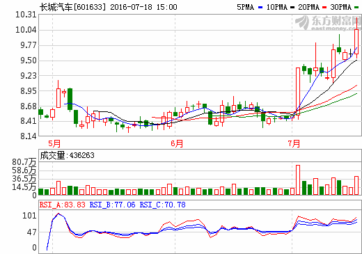 18日新能源汽車概念股盤后統計 長城汽車漲幅4.58%