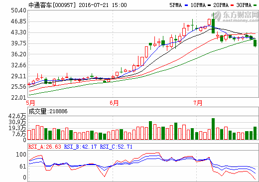 21日新能源汽車概念股盤后統計 中通客車跌幅5.36%...