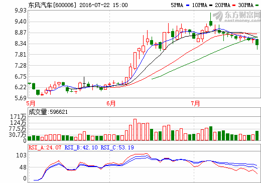 22日新能源汽車概念股盤后統計 東風汽車跌幅3.40%