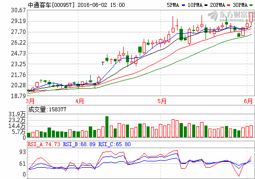 2日新能源汽車概念股盤后統計 中通客車漲幅5.31%