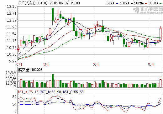 7日新能源汽車概念股盤后統計 江淮汽車漲幅6.18%