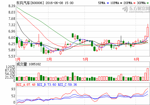 8日新能源汽車概念股盤后統計 東風汽車漲幅7.47%