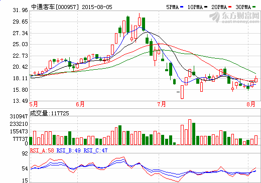 5日新能源汽車概念股盤后統計 中通客車漲幅5.26%...