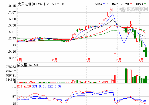 6日新能源汽車概念股盤后統計 大洋電機跌停