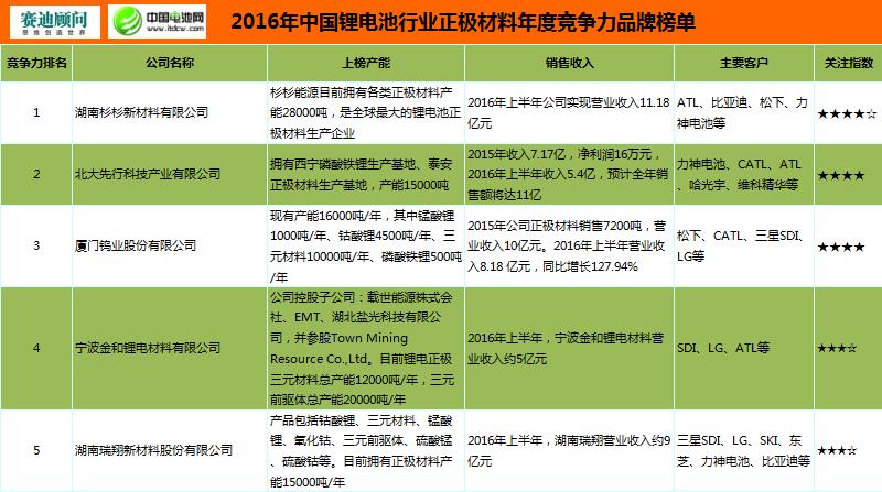 • 2016年中國鋰電池正極材料年度競爭力品牌榜單 日期:2016-11-06 08:46:46 點擊:10582 好評:0