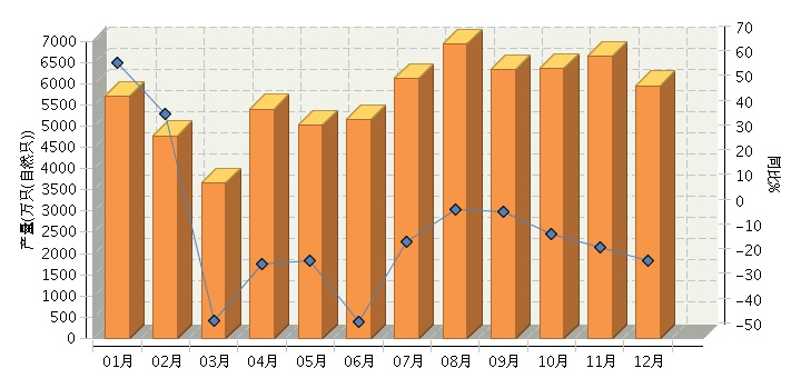 2013年全國堿性蓄電池行業累計完成產量69641.14萬只(自然只),同比增長-9.99%。...