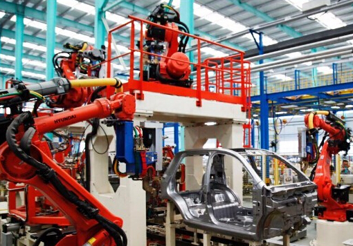在威海南海新區(qū)德瑞博新能源汽車制造有限公司車間內,紅色的工業(yè)機器人正在進行沖壓、焊裝、總裝等生產活動,標志著年產15萬輛新能源汽車的生產線正式投產。...