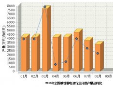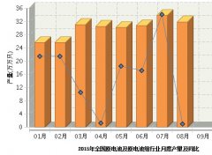 2015年8月全國堿性蓄電池產量同比減少45.56%...