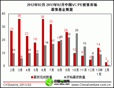 受春節假期影響,2013年2月份中國VC/PE市場活躍度出現明顯下滑。募資方面,僅3支基金募資完成,募資金額僅為10億元;投資方面,披露VC、PE投資案例共計17起,相比上個月下降50%;如不考慮京東商城7億美元巨額融資案例,投資規模也同樣大幅下滑。考慮到目前宏觀經濟回暖緩慢、A股及美股市場IPO窗口持續關...